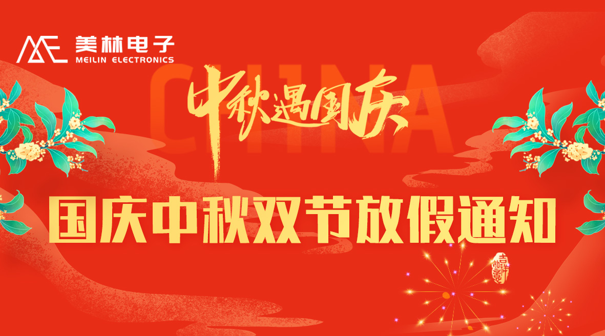 尊敬的各位客戶、各合作伙伴: 團圓慶華誕,雙節(jié)共歡騰。國慶中秋雙節(jié)將至,根據(jù)國家有關規(guī)定結合公司實際,放假安排如下:10月1日至10月8日放假休息,共8天,10月9日(星期四)正常上班。 感謝您一如既往的信任和支持。美林電子祝您財源廣進,團圓喜樂,闔家幸福,萬事如意!